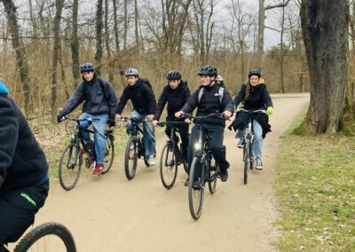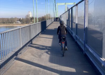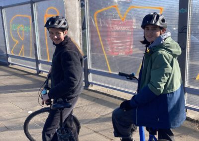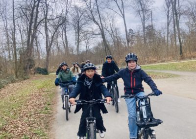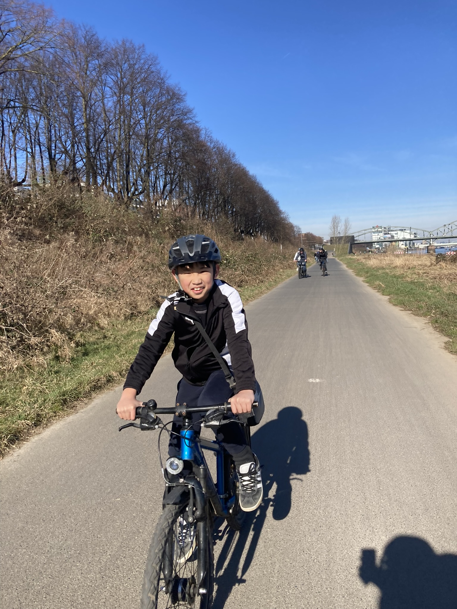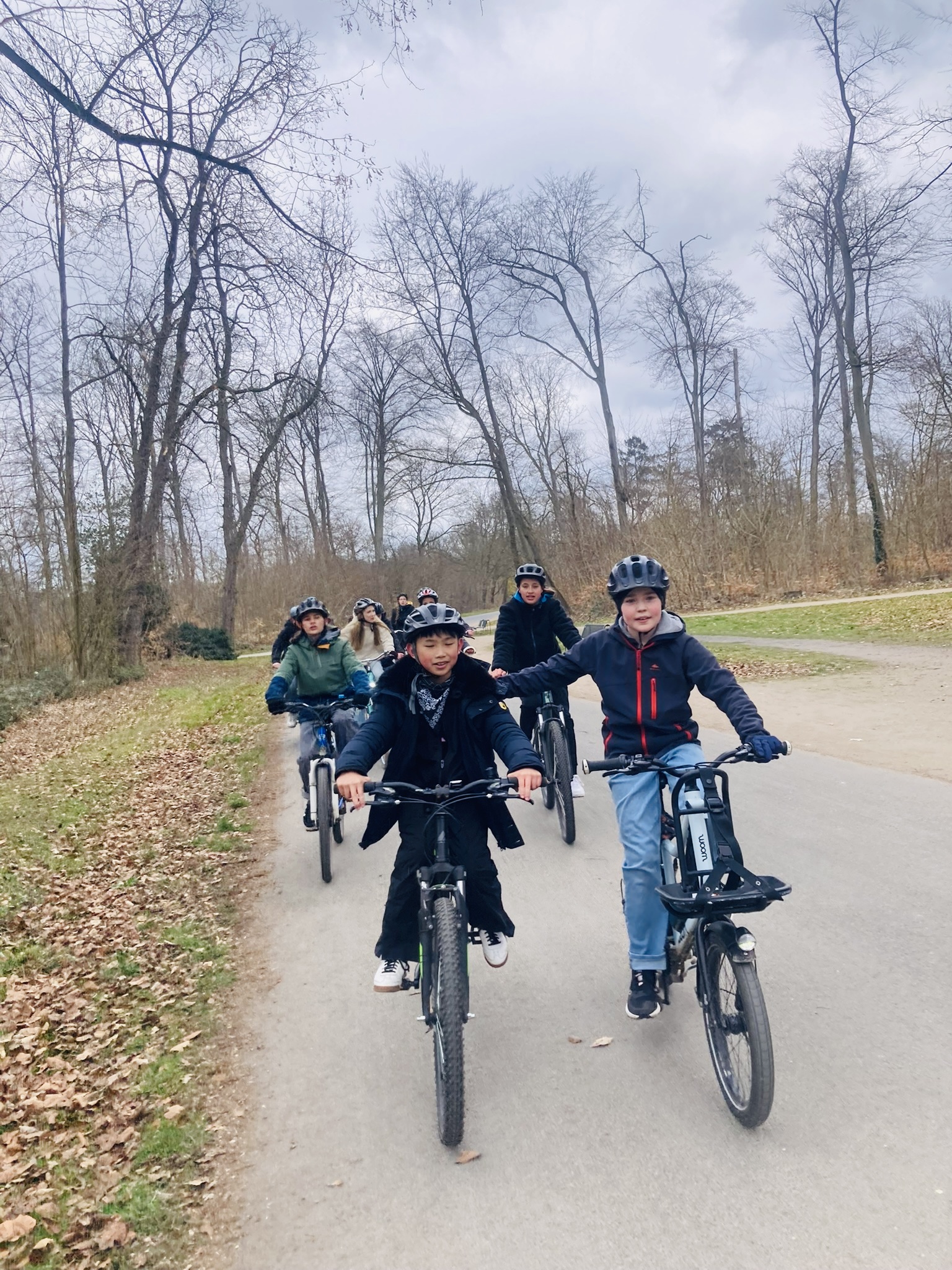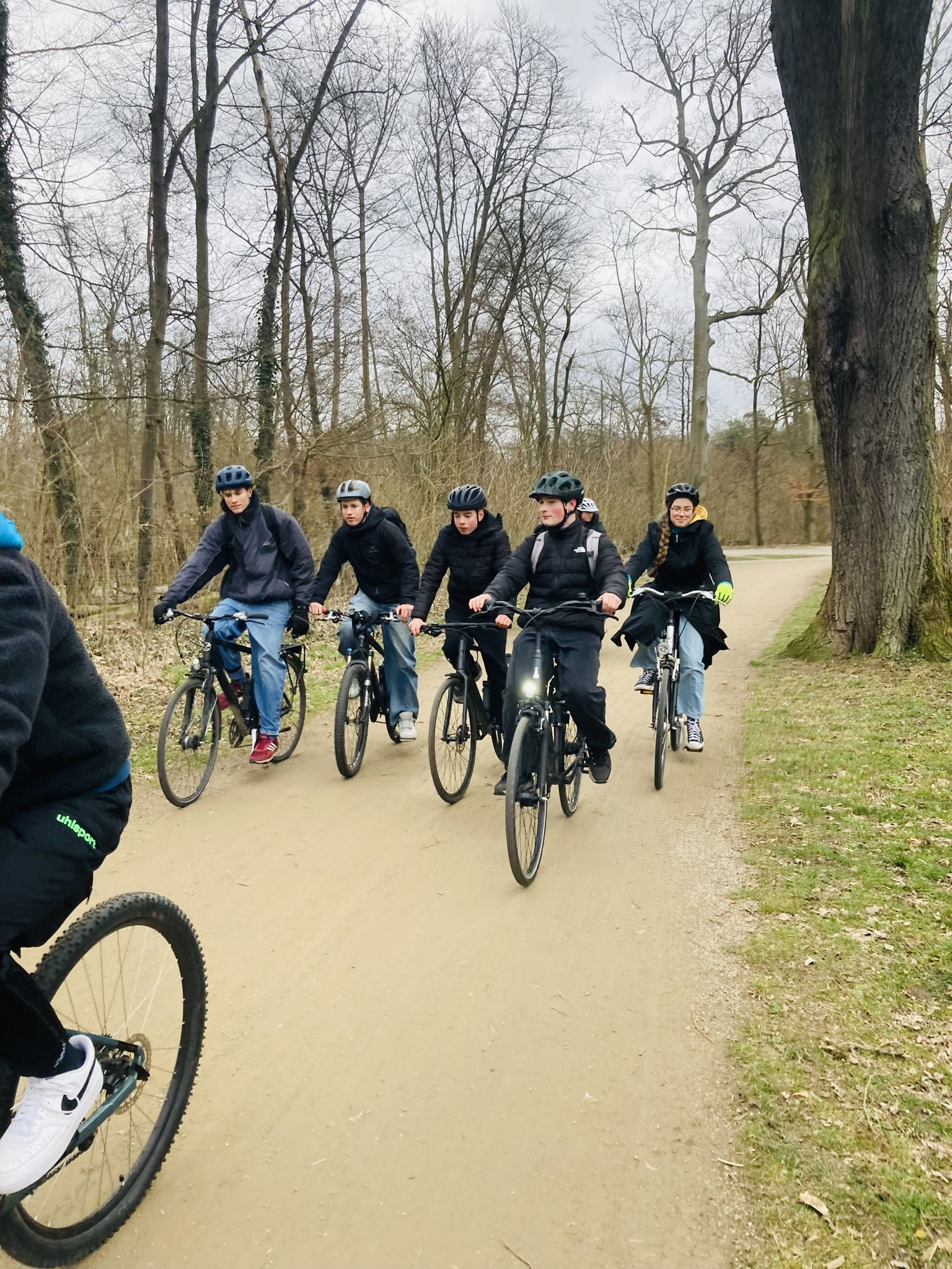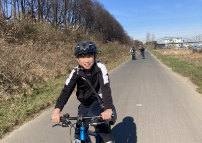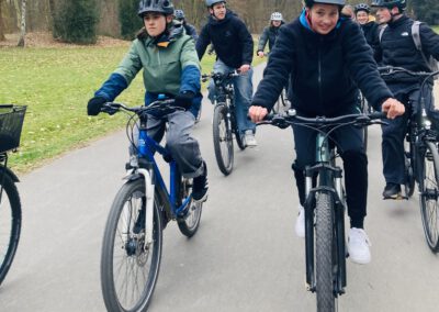 Im dritten Quartal stand das Projekt „Winterradeln“ zur Wahl. In 2er-Gruppen durften sich die Teilnehmer*innen mit der App „Komood“ Routen in und um Köln überlegen und die entsprechende Radtour leiten. Nach einem Radcheck und der Auffrischung der Verkehrsregeln ging es dann ganz nach dem Motto „Es gibt kein schlechtes Wetter, nur schlechte Kleidung“ jeden Mittwoch auf eine andere Radtour. Von Regenschauern, platten Reifen und Straßensperrungen war alles dabei. Zum Schluss haben es aber alle immer heil zur Schule zurück geschafft.