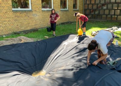 Nach zwei Jahren Vorlauf, vielen Anträgen und Verhandlungen war es endlich so weit: Die Behörden gaben grünes Licht und Nele Diekmann konnte mit engagierten Schüler*innen aus dem Bienen-Club sowie fachkundigen Eltern einen Teich hinter unserem Schulgebäude ausheben. Das war harte Arbeit! Danke für euren erfolgreichen Einsatz! Der Teich ist nun gefüllt und bepflanzt und wird bereits von unsere Bienen und zahllosen andere Insekten angenommen.
