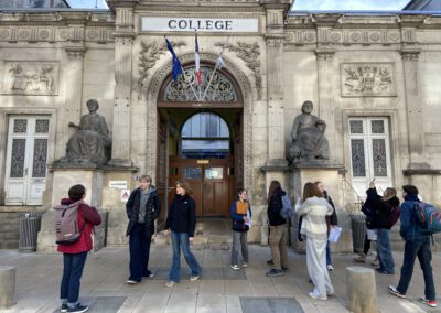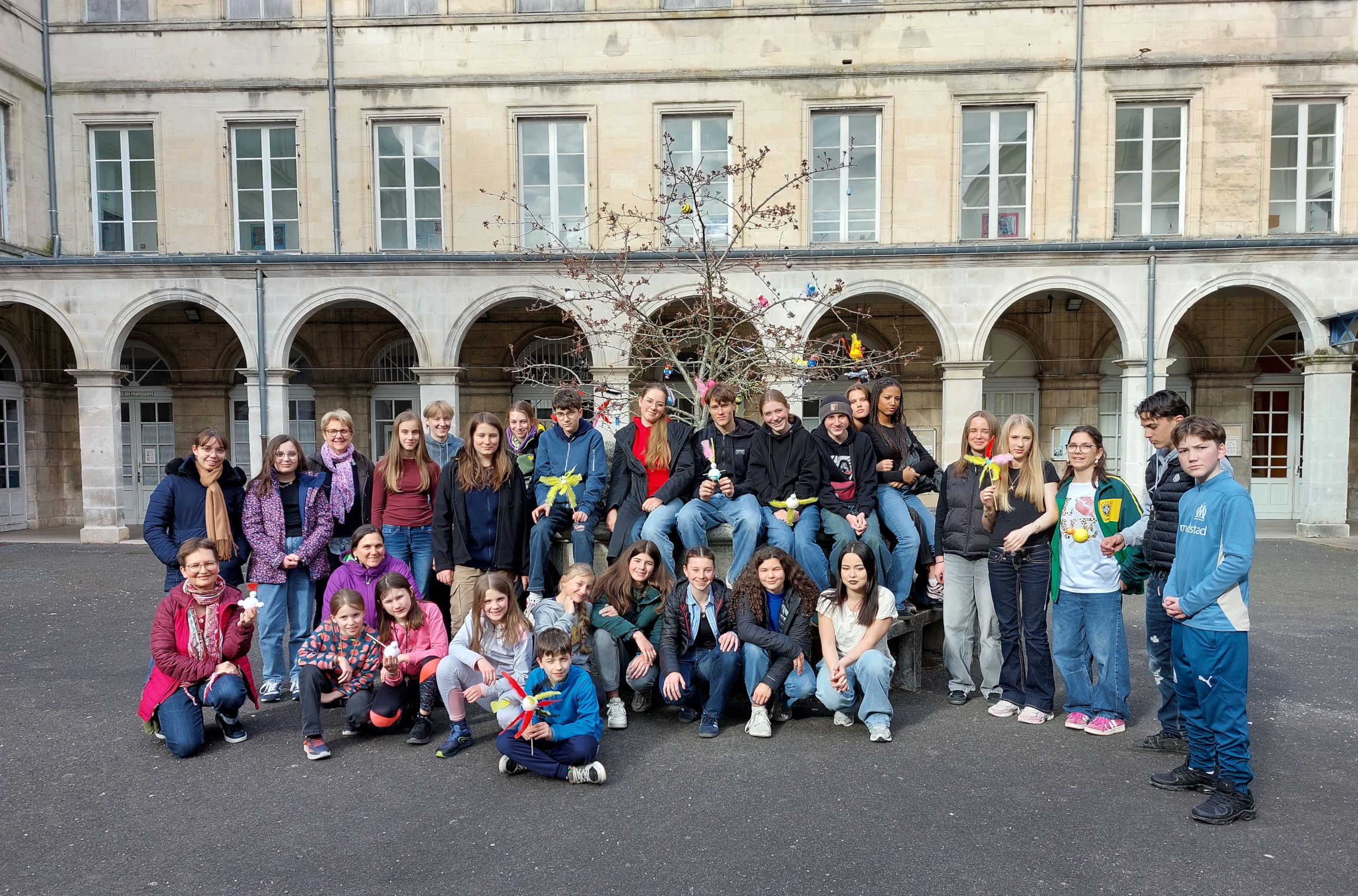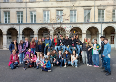 Im März 2025 waren wir mit 28 Schülerinnen und Schülern der Klassen 7-10 zu Besuch bei unserer Partnerschule, dem Collège Camille Saint Saëns in Chaumont. Highlights waren ein Ausflug nach Troyes, gemeinsame Kunstaktionen und gemeinsames Sporttreiben. Alles in allem war es eine tolle Erfahrung und eine Erweiterung des Horizonts, trotz Heimweh, das manchmal aufkam. Es waren einige Kinder dabei, die kein Französisch lernen, das war sehr mutig! Unsere ehemalige Schülerin Noomi hat uns begleitet.