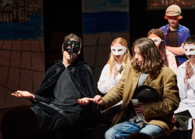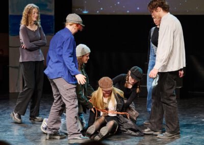 In diesem Jahr führten unsere Schülerinnen und Schüler der Abgangsklasse als Theaterprojekt „Herr der Diebe“ frei nach Cornelia Funke auf. Unter der Leitung von Theaterpädagoge Paul Broisch und Julia Grigoriou wurde der bekannte Roman mit den Jugendlichen phantasievoll in ein Bühnenstück mit musikalischen Einlagen umgeschrieben. Adam, Alva, Anton, Florentine, Frowin, Henning, Ida, Julius, Lea, Leni, Leo, Leonard, Marek, Mia, Niklas, Obioma, Oscar, Rebecca, Stina, Vera und Zoe – ihr wart großartig! Vielen Dank auch an die Alte Feuerwache, den Förderverein, Simon Güls und die zahlreichen Eltern, die diese Produktion möglich gemacht haben.