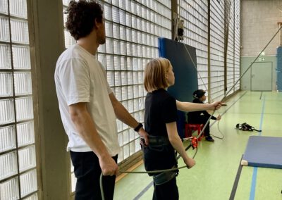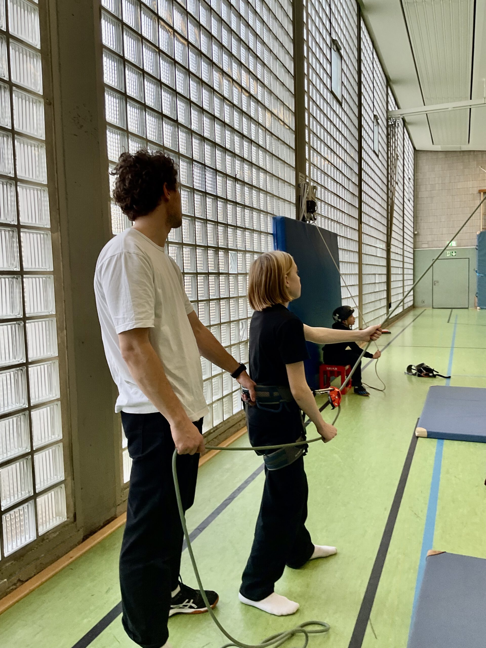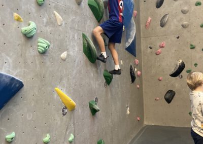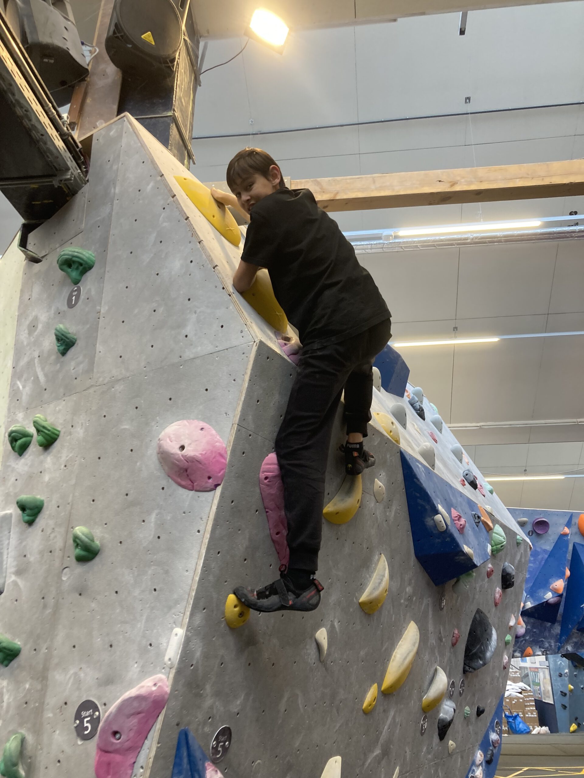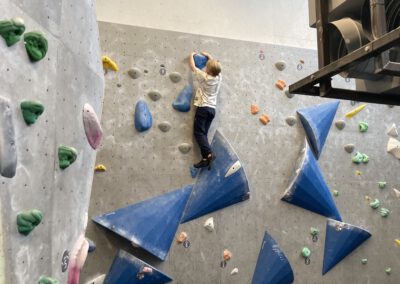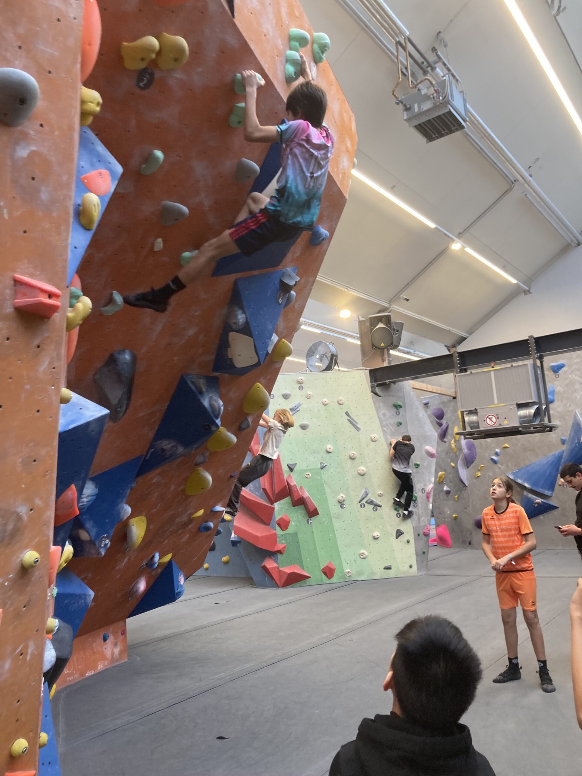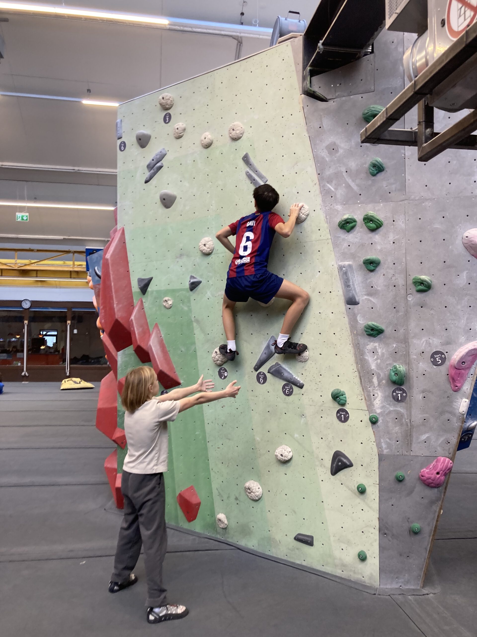 Zum Abschluss des Mittwochprojekts „Bouldern“ durfte ein Ausflug in eine Boulderhalle natürlich nicht fehlen. In Kleingruppen erkundeten die Schüler*innen die fast leere Boulderhalle und konnten sich an unterschiedlich schweren Routen ausprobieren. Von ganz schön hohen „HighBalls“ bis hin zu kniffligen Fingerrouten und Überhängen war alles dabei. Da konnte unsere kleine Wand in der Turnhalle natürlich nicht ganz mithalten. Zum Abschluss haben dann noch alle zusammen Versteck-Fangen in dem Kinderteil der Halle gespielt, wobei unser Sportlehrer Luiz die Kids durch ein Burglabyrinth gejagt hat. Er hatte keine Chance. 🙂