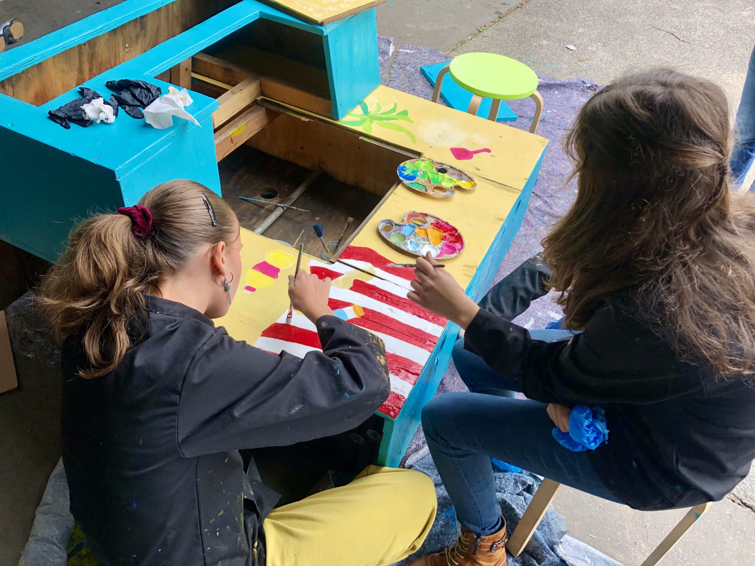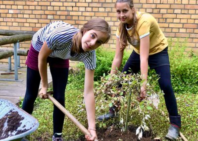 In der Sommerprojektwoche nahmen wir uns der Sitzgelegenheit auf dem Schulhof an, unsere Schüler*innen gaben ihnen einen neuen Anstrich oder bauten selber neue Sitzmöbel. Die Bäume, die in den Wanderbaum-Kästen eingepflanzt waren, wurden „ausgewildert“ und bekamen so mehr Möglichkeiten für das Wachstum. Neue Pflanzen wurden eingesetzt und bereichern unseren Schulhof. Danke an alle fleißigen Arbeiter*innen!