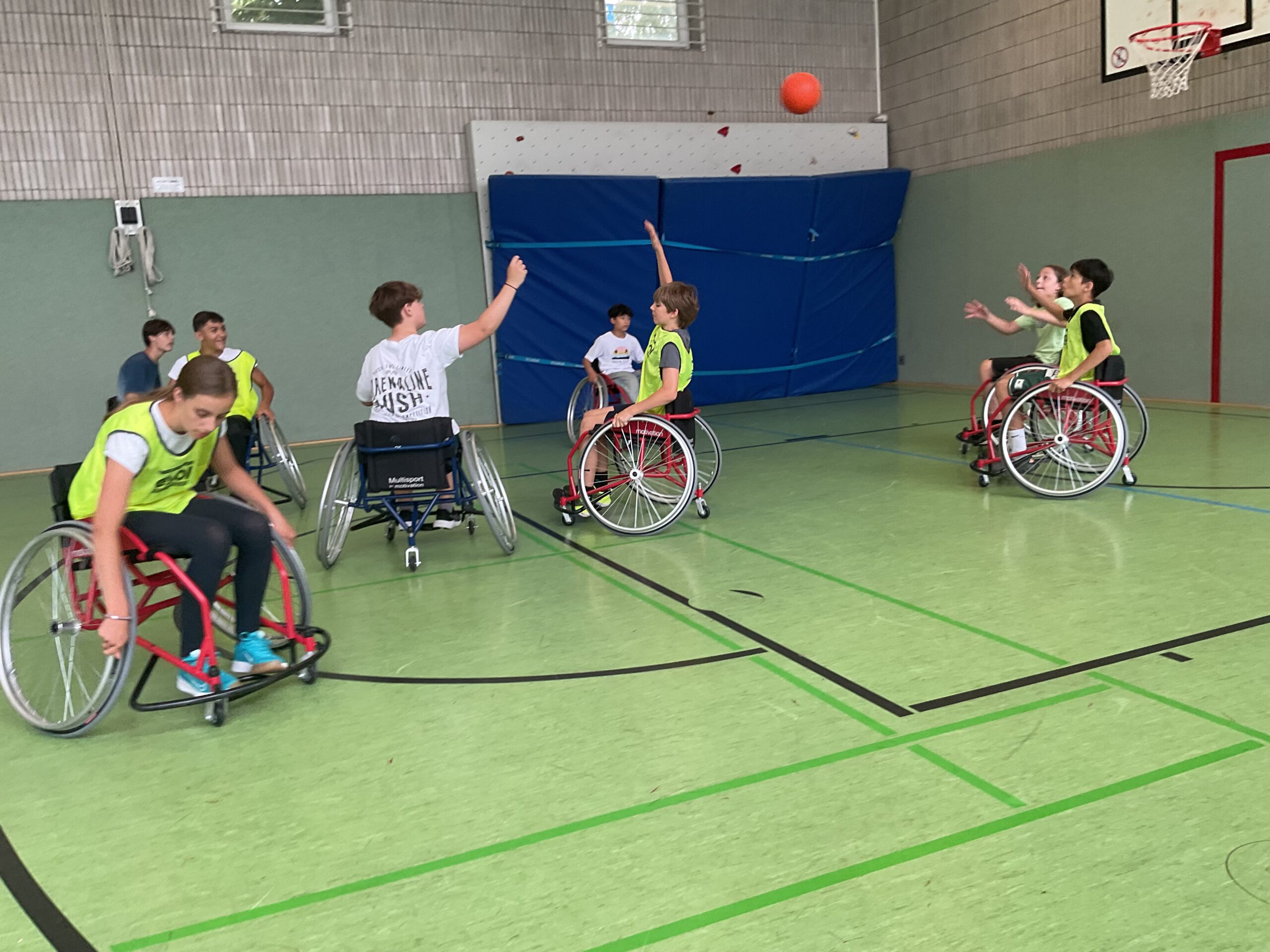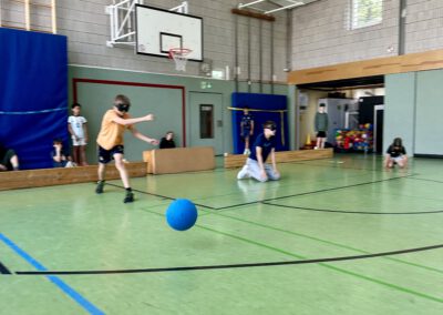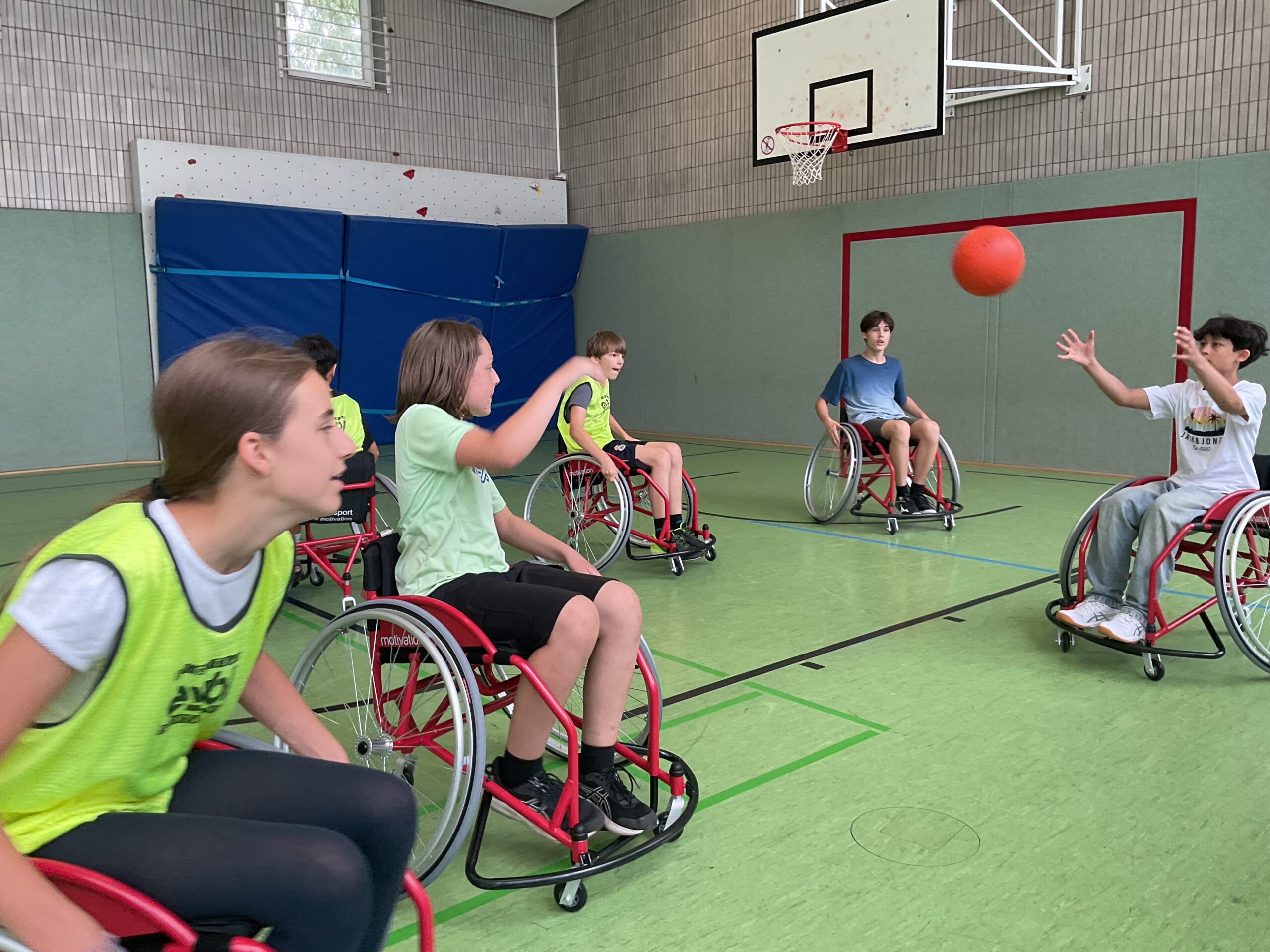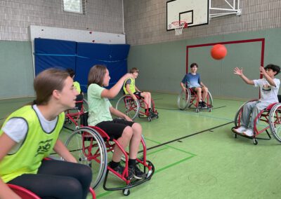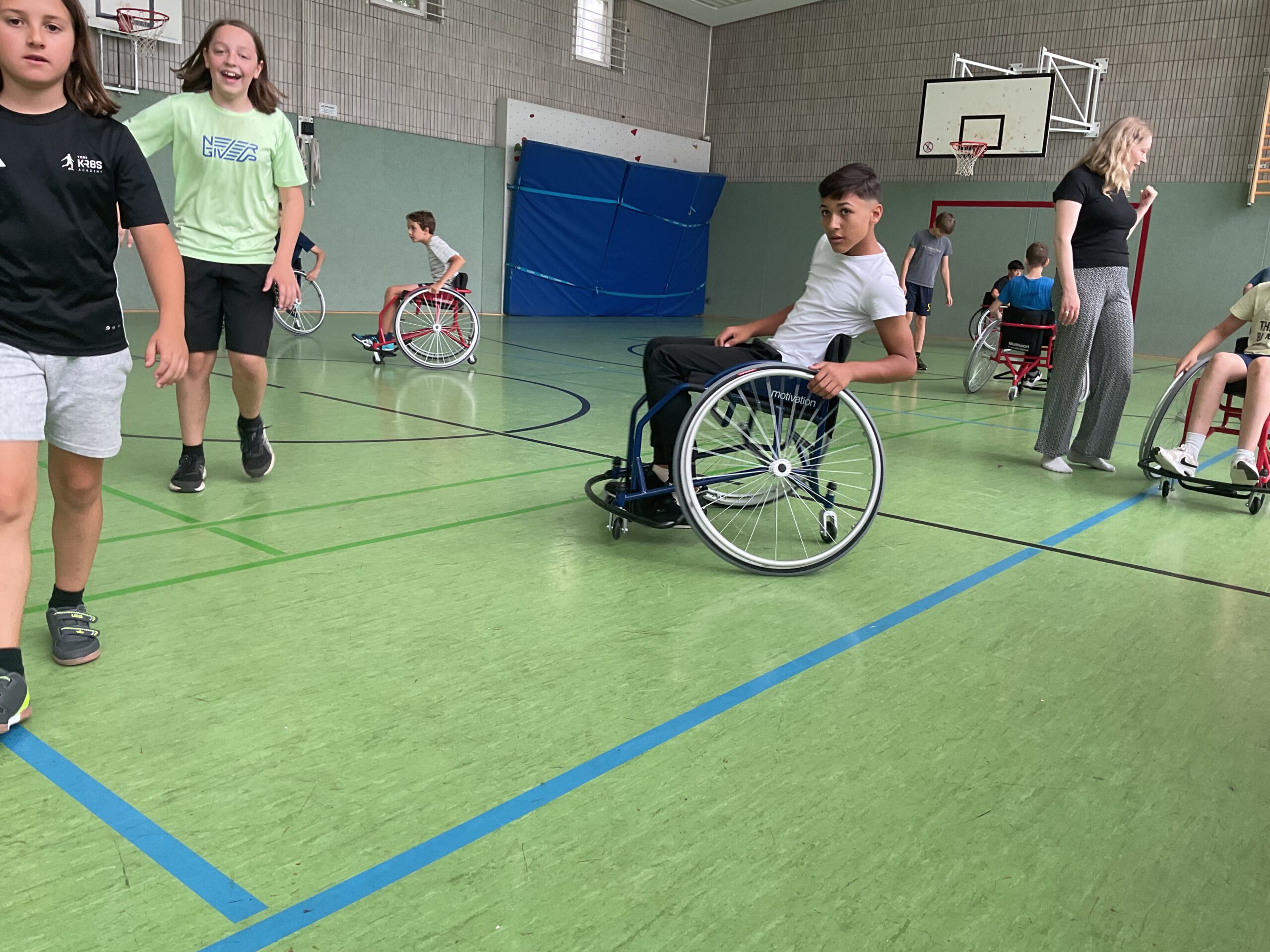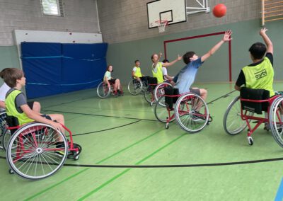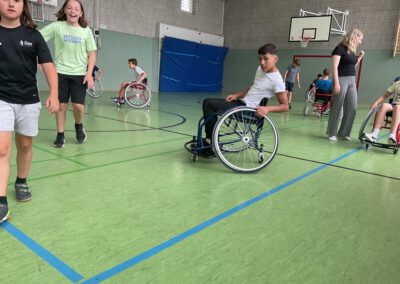 Im Sportprojekt im Rahmen unserer Sommerprojektwoche sollte es darum gehen Vielfalt im Sport nicht nur theoretisch zu erörtern, sondern für die Schüler*innen möglichst nahbar zu machen und sie selbst praktische Erfahrungen sammeln zu lassen. Neben ersten Vertrauensübungen und Blindenparcours hatten wir das Glück Rollstuhlbasketball und Goalball als vertiefende Sportarten anbieten zu können. Dafür konnten wir unterschiedliche Referenten gewinnen an unsere Schule zu kommen. Mit dabei war Björn Naß, Blindensportreporter und Goalballtrainer, der uns einen sehr informativen und spaßigen Tag ermöglicht hat. Vielen Dank dafür!