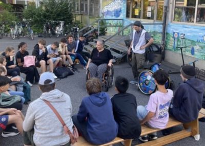 Bei der Konzipierung des Projekts war es unseren Lehrer*innen Luiz und Lina jedoch auch sehr wichtig nicht nur verschiedene Parasportarten kennenzulernen, sondern auch einen Raum der Begegnung und einen Austausch zwischen unseren Schüler*innen und Parasportler*innen und Menschen zu schaffen, die den Parasport in Köln mit aufgebaut haben und gestalten. In einem Zoom-Interview beantwortet Paralympic-Teilnehmer Michael Dennis ehrlich und charmant all die Fragen unsere Schüler*innen, obwohl es bei dem in den USA lebenden Sportler mitten in der Nacht war. Auch an dieser Stelle einen großen Dank an Michael Dennis!